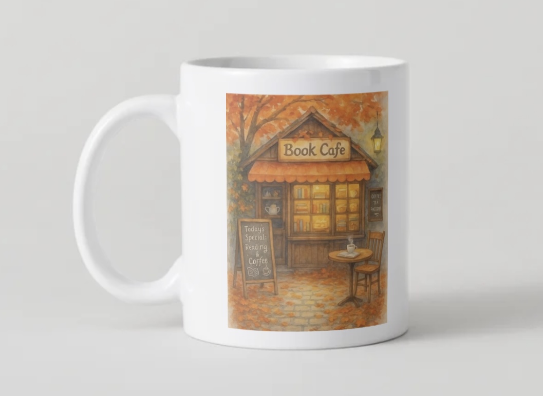Plongez dans l’ambiance cosy de l’automne avec ce magnifique mug Book Café. Illustré de détails chaleureux rappelant les plaisirs simples de la saison – citrouilles, livres, boissons chaudes et feuilles d’automne – il est idéal pour accompagner vos moments lecture, café ou chocolat chaud.
