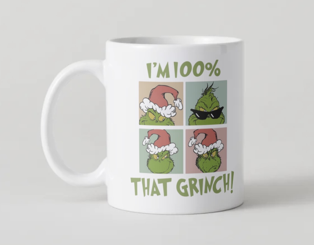 Affichez votre côté grincheux (mais avec style !) grâce à ce mug original I’m 100% That Grinch. Parfait pour savourer votre café, thé ou chocolat chaud pendant les fêtes, il apportera une touche d’humour et de caractère à vos pauses gourmandes.